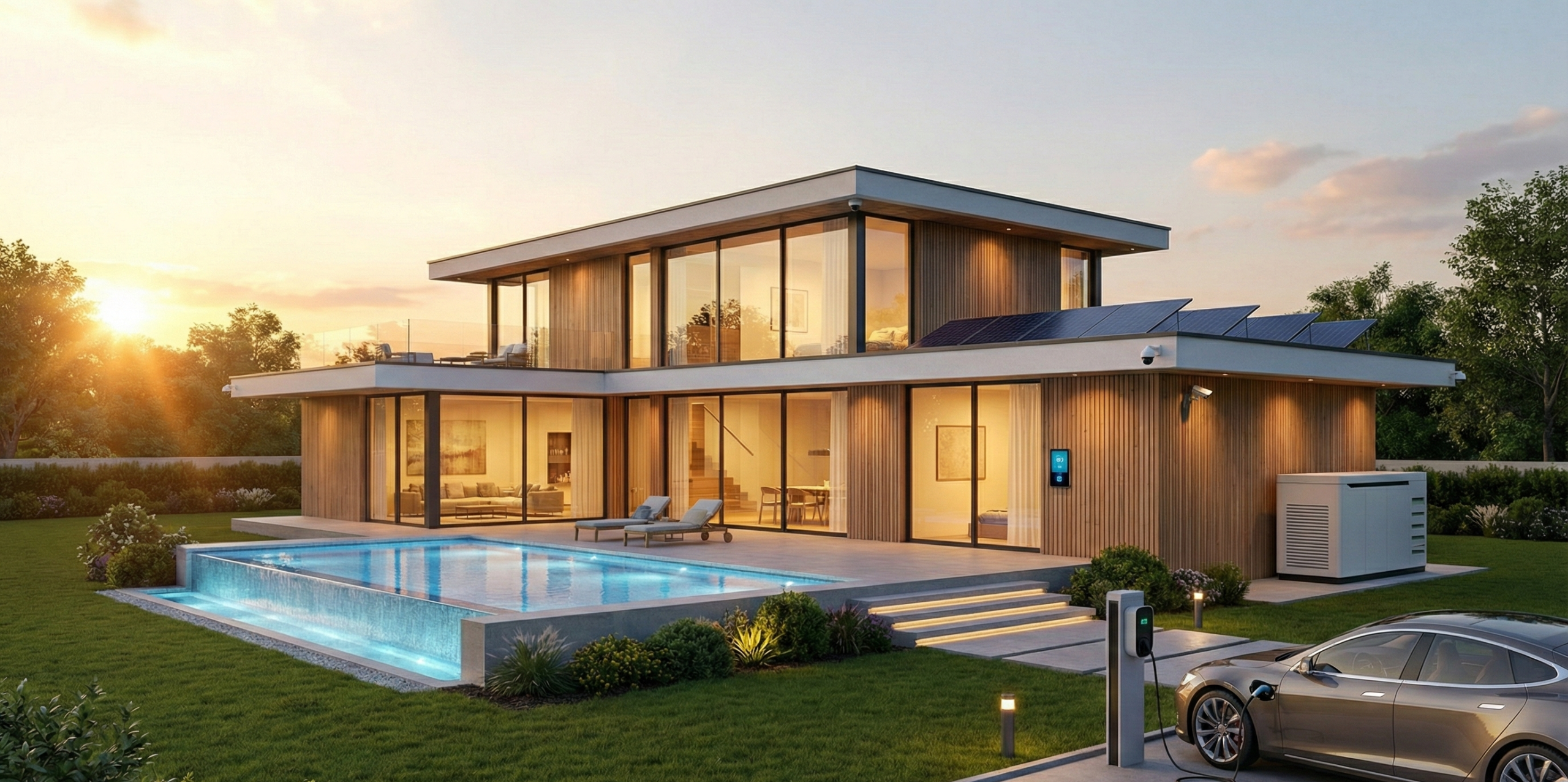 Nowoczesne wille, rezydencje i domy wolnostojące. Instalacje inteligentnego budynku (Smart Home), systemy zabezpieczeń oraz niezawodne zasilanie.