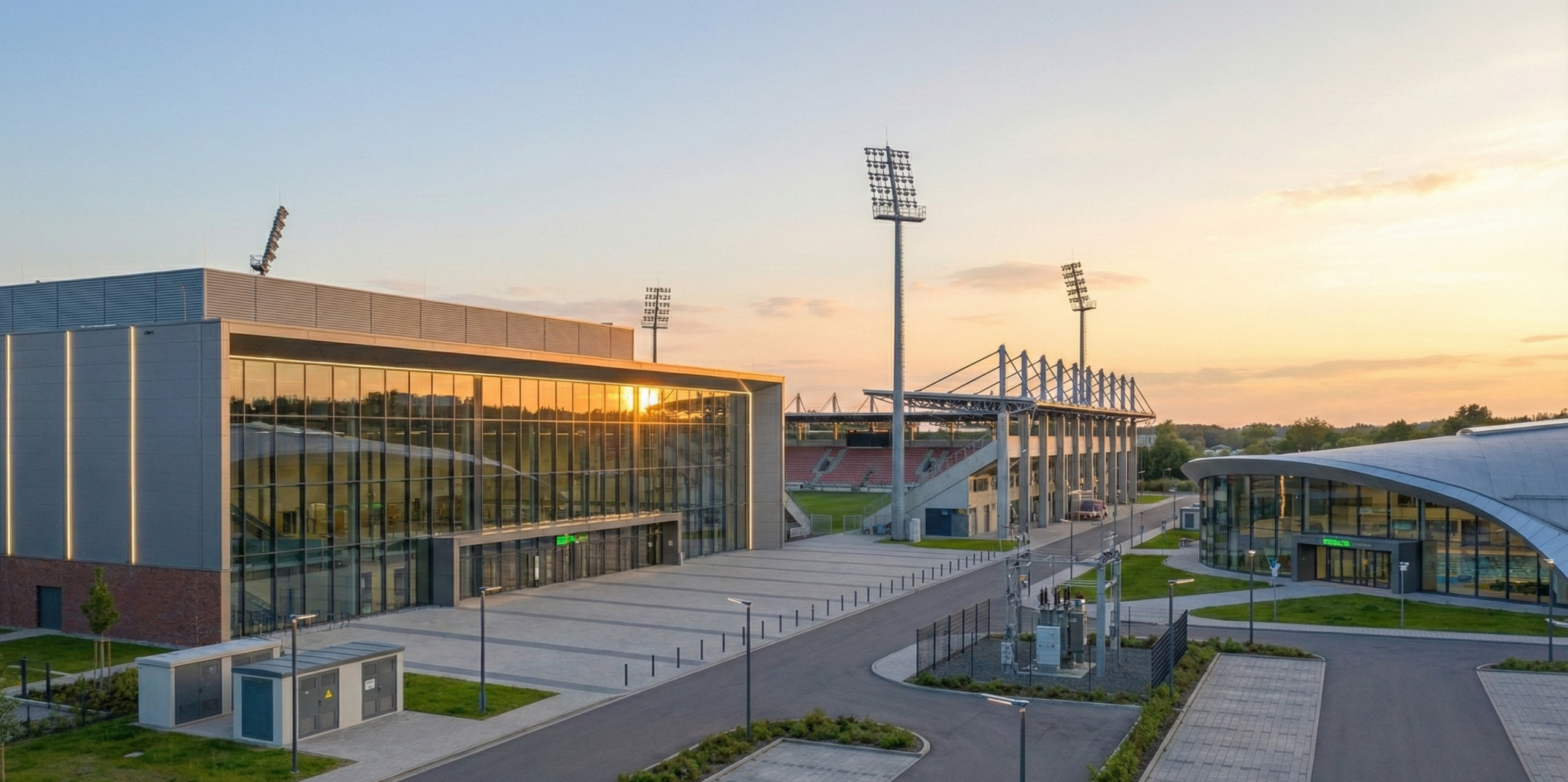 Hale widowiskowo-sportowe, stadiony, pływalnie i kompleksy rekreacyjne. Specjalistyczne oświetlenie obiektowe oraz wydajne systemy zasilania i sterowania.