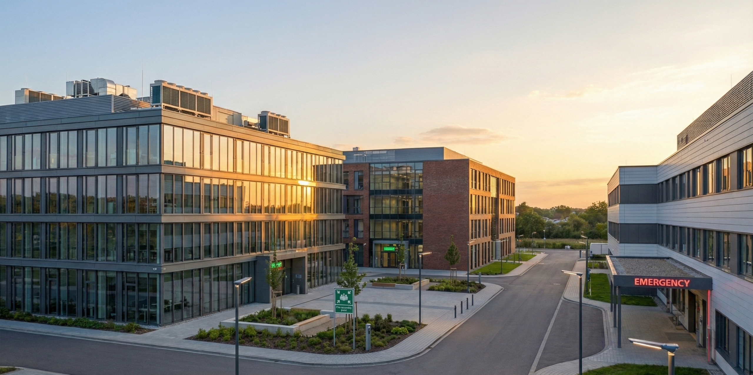 Biurowce, placówki edukacyjne, szpitale i urzędy. Projekty spełniające rygorystyczne normy bezpieczeństwa, w tym zaawansowane systemy PPOŻ i oświetlenie awaryjne.